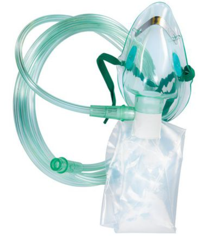 - Le masque à haute concentration est muni d'un réservoir en oxygène qui permet un enrichissement en oxygène de l'air inspiré.